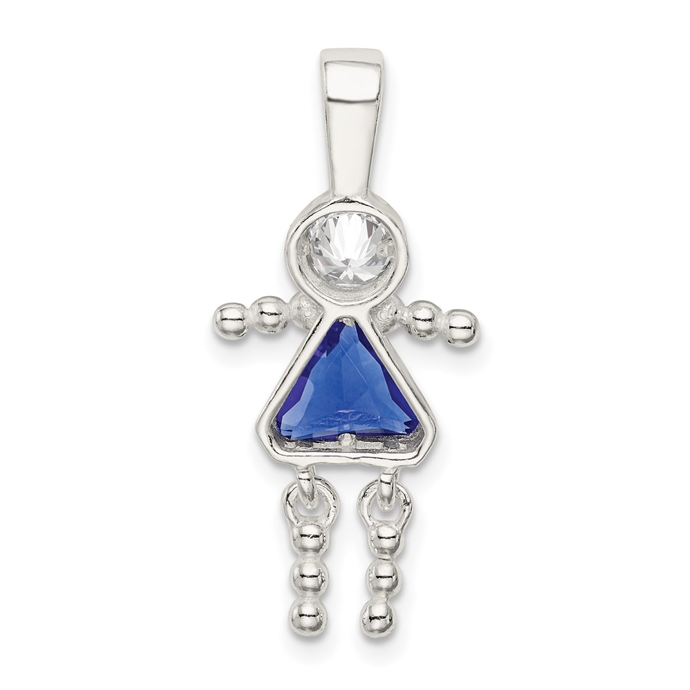 Sterling Silver Rhodium-plated CZ & September Glass Girl Pendant