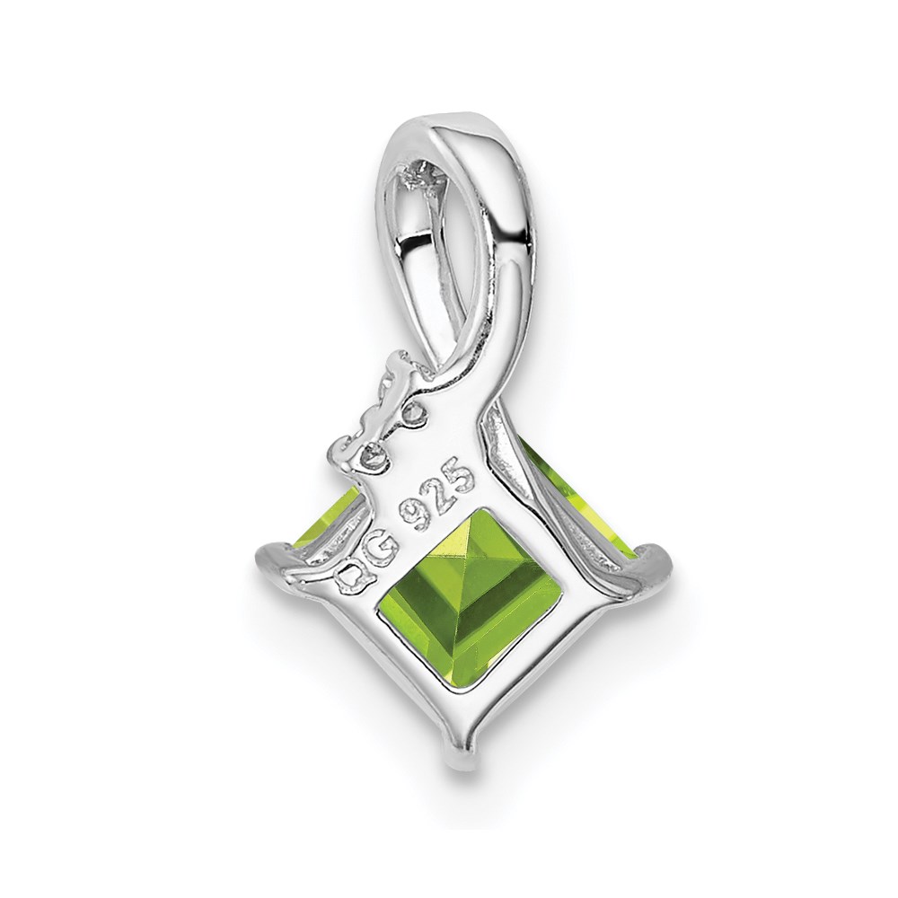Sterling Silver Rhodium Plated Diamond and Peridot Square Pendant
