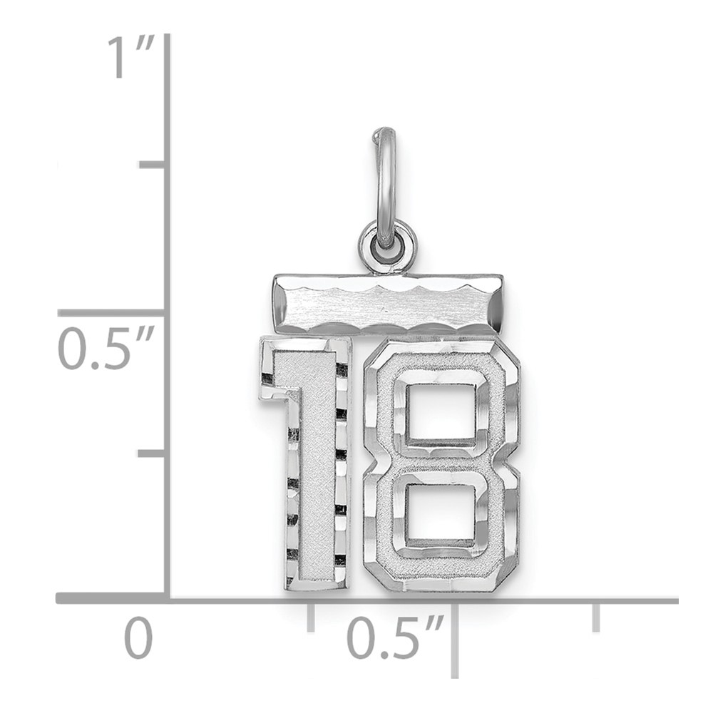 Sterling Silver Rhodium-plated Diamond-cut #18 Charm