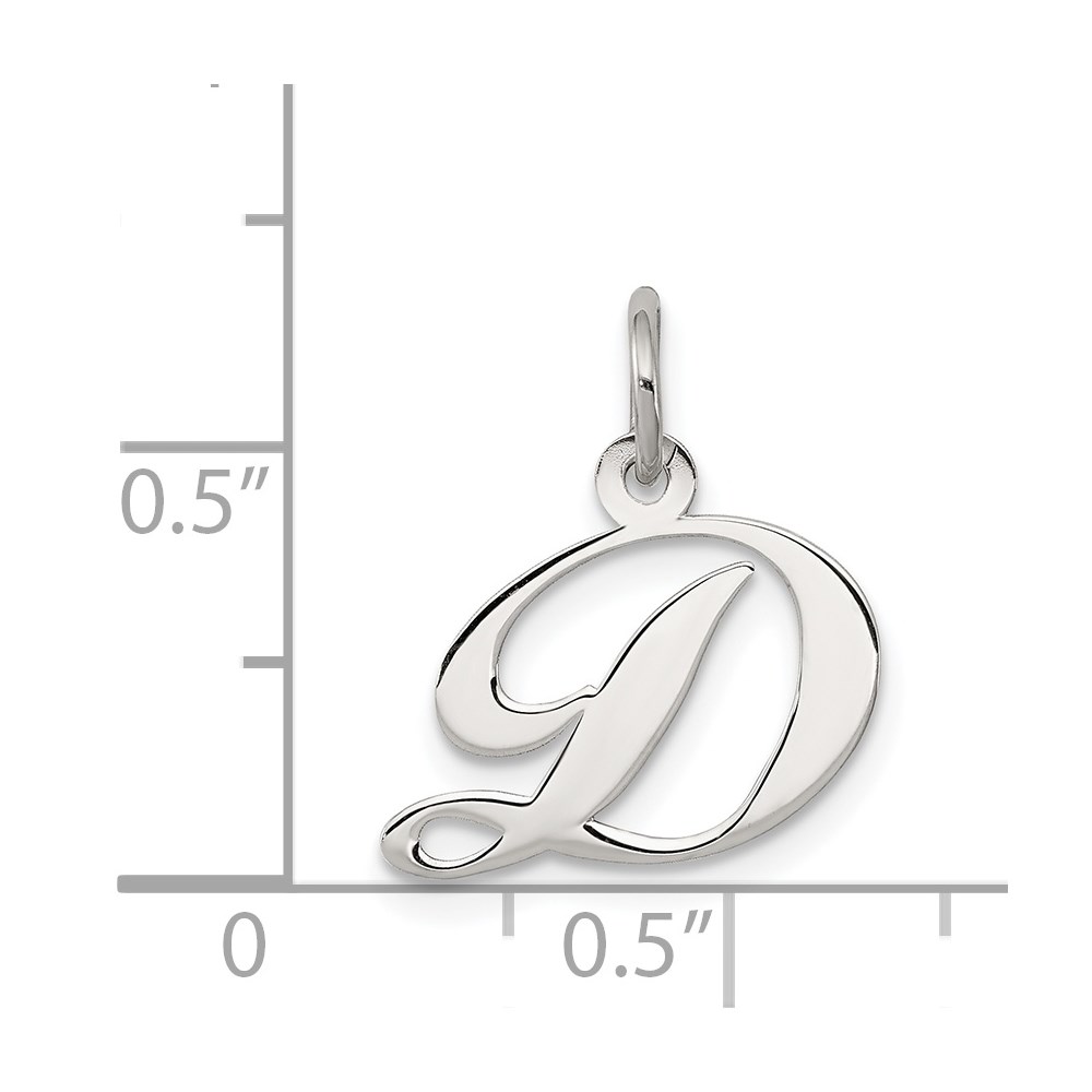 Sterling Silver Rhodium-plated Fancy Script Letter D Initial Charm