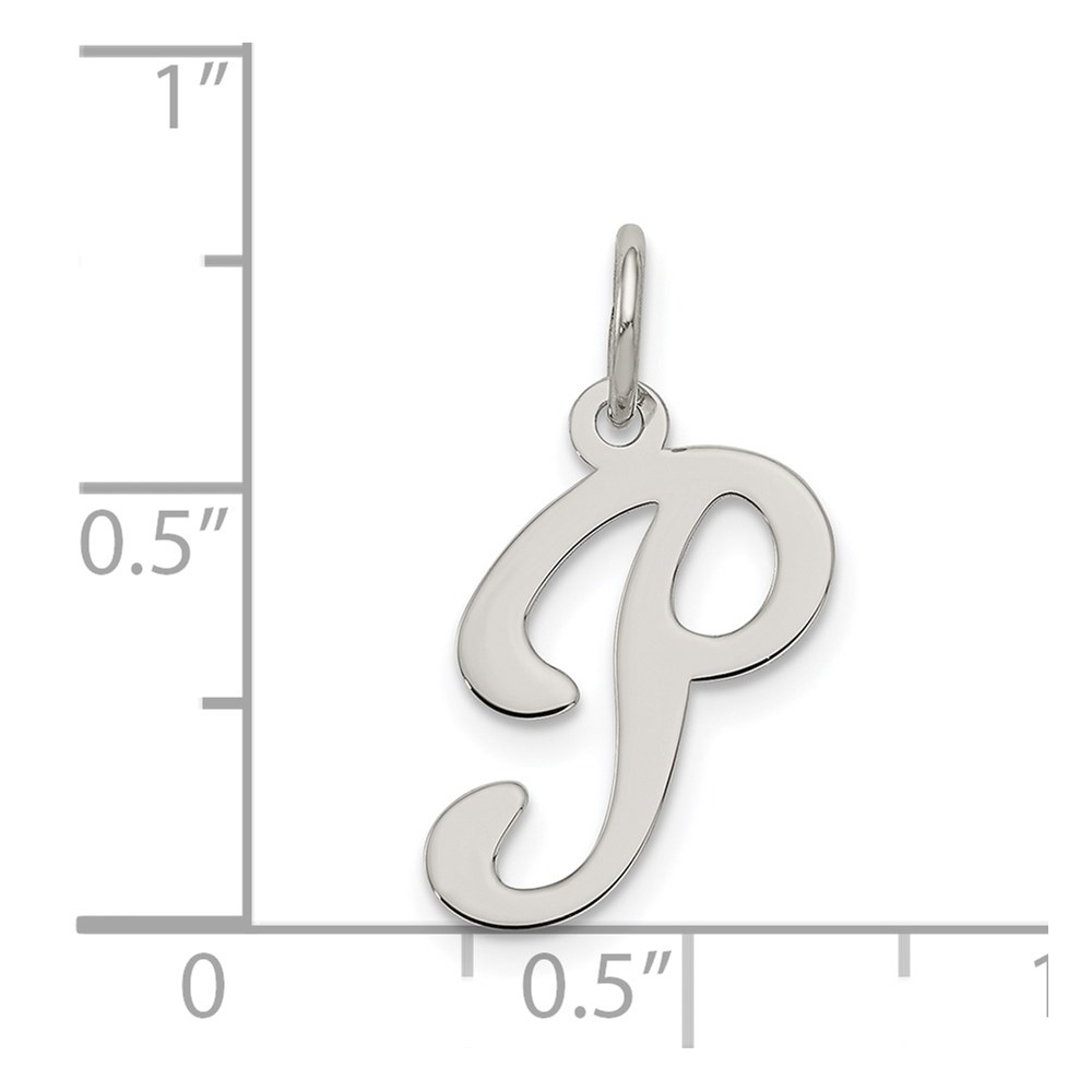 Sterling Silver Rhodium-plated Fancy Script Letter P Initial Charm