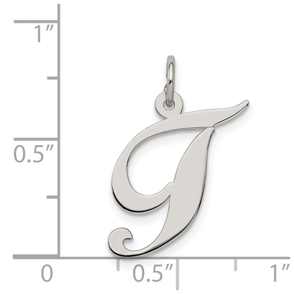Sterling Silver Rhodium-plated Fancy Script Letter T Initial Charm