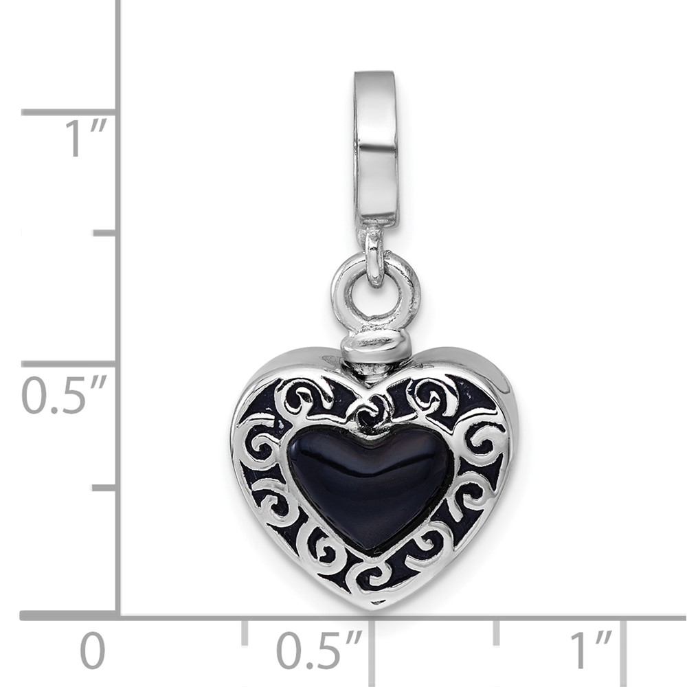 Sterling Silver Rhodium-plated Onyx Enameled Heart Ash Holder Bead/Pendant