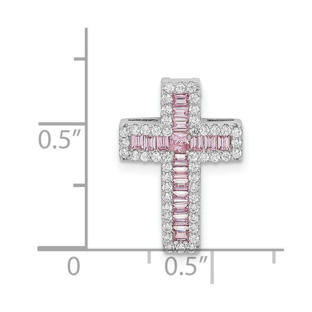 Sterling Silver Rhodium-plated Pink & White CZ Cross Chain Slide