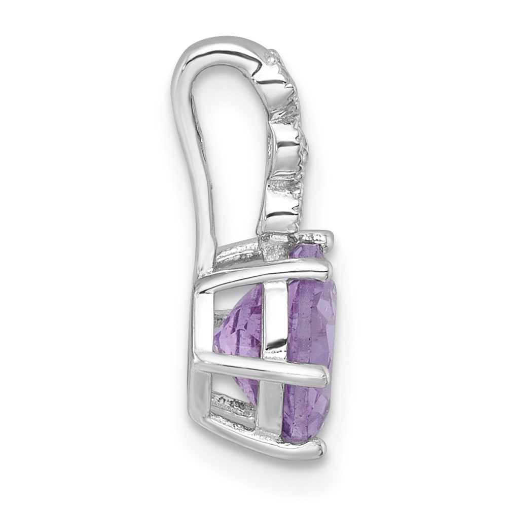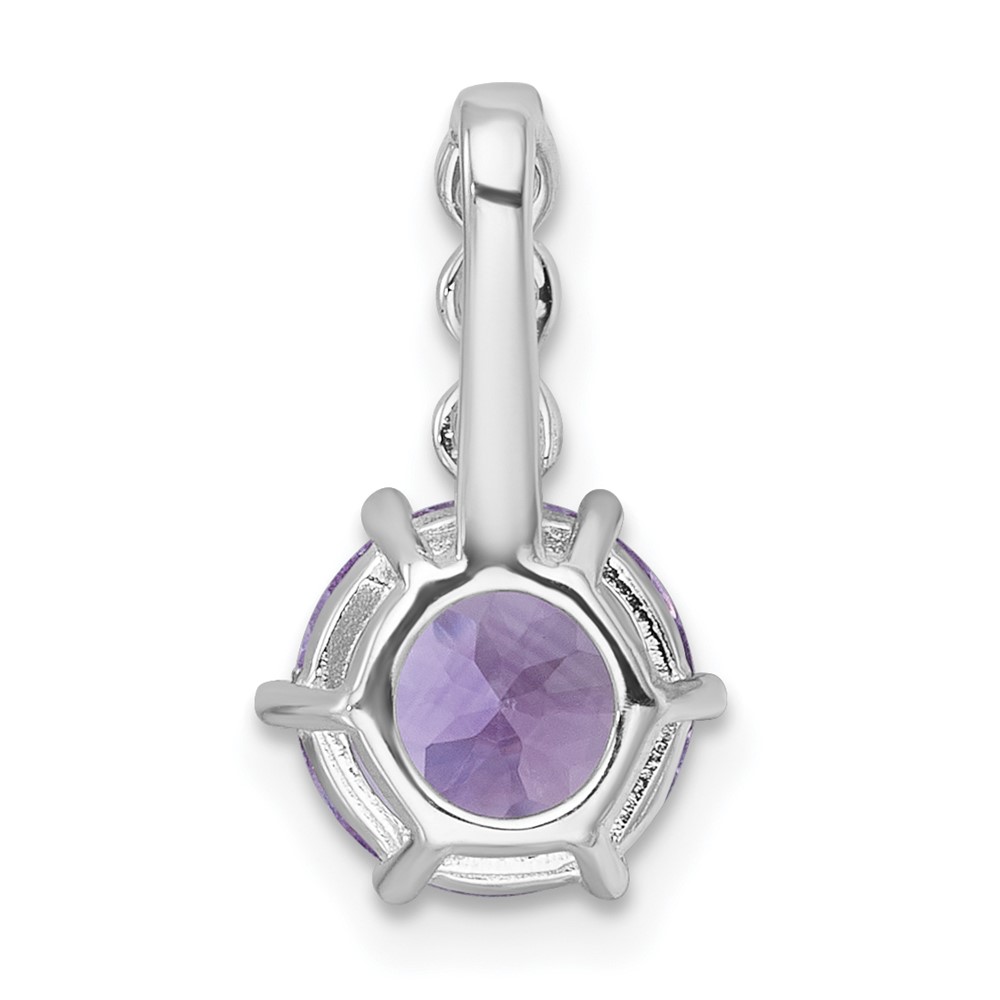 Sterling Silver Rhodium-plated Polished and Beaded Round Amethyst and White Topaz Chain Slide Pendant