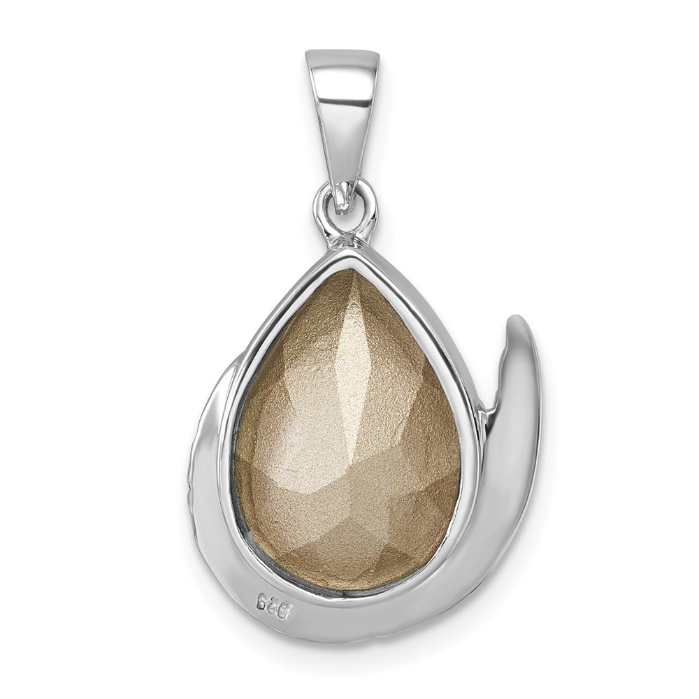 Sterling Silver Rhodium-Plated Polished & Antiqued Crystal Mermaid Tail Pendant