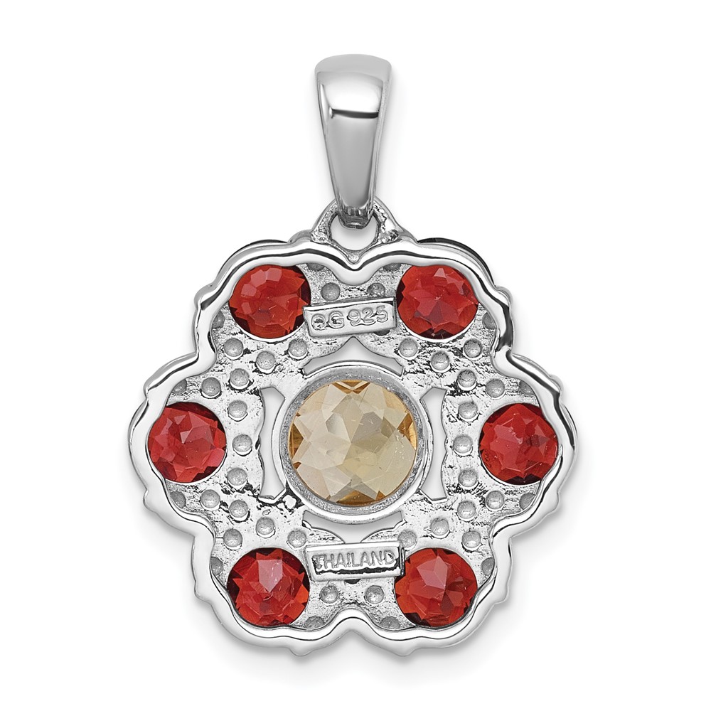 Sterling Silver Rhodium-plated Polished Citrine and Garnet Flower Pendant