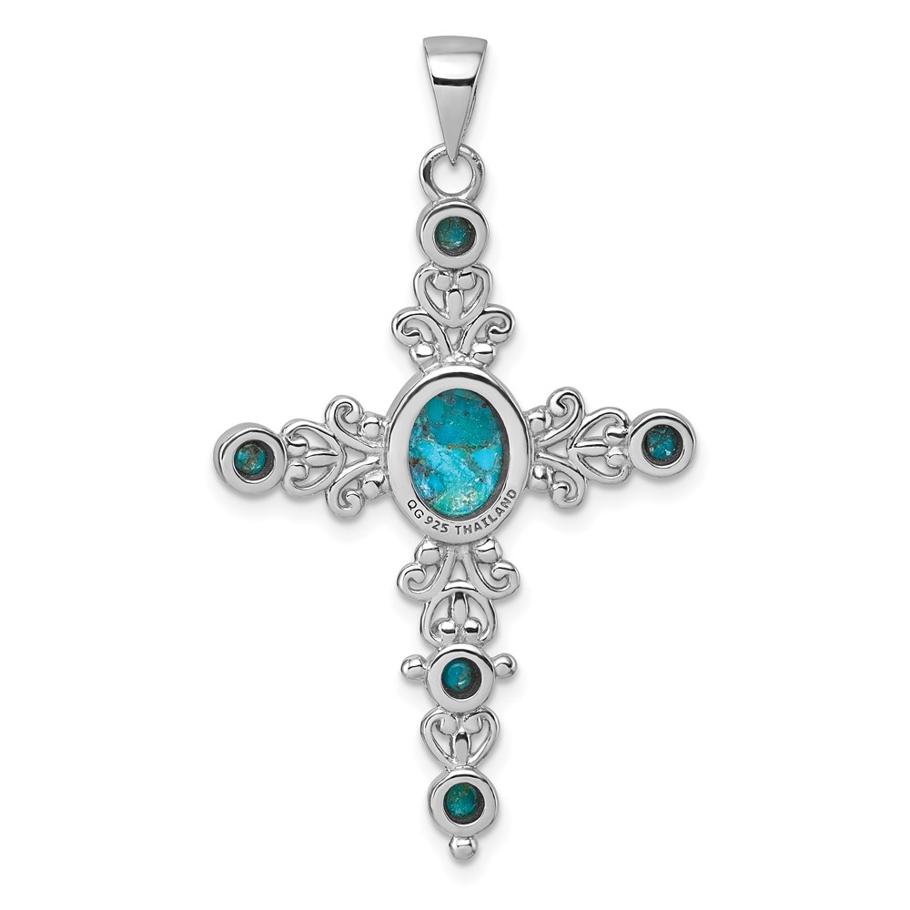 Sterling Silver Rhodium-plated Polished Compressed Turquoise Cabochons Fancy Cross Pendant