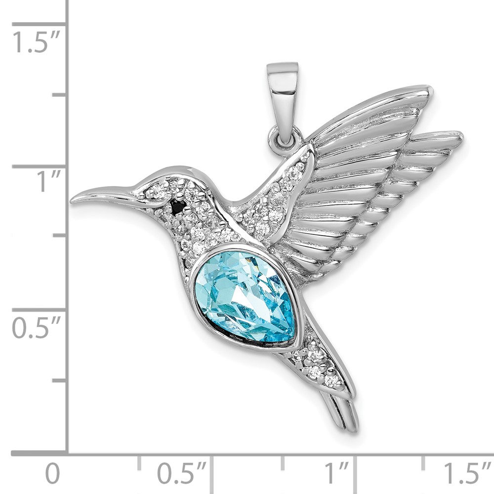 Sterling Silver Rhodium-plated Polished Crystal Hummingbird Pendant