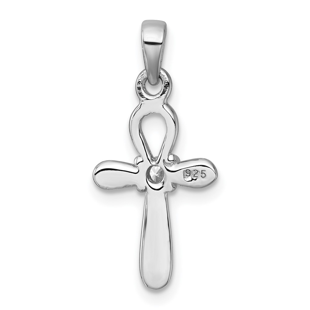 Sterling Silver Rhodium-plated Polished CZ Cross Pendant
