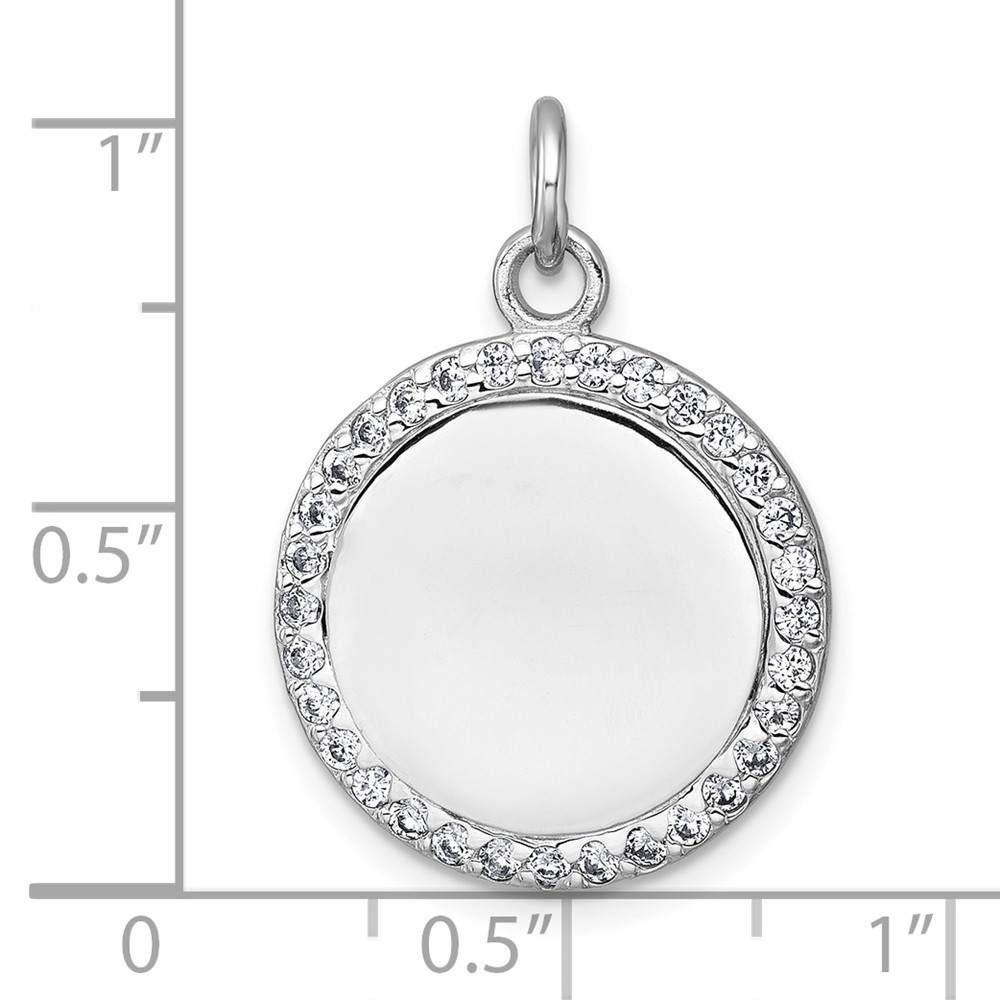 Sterling Silver Rhodium-plated Polished CZ Engraveable Circle Pendant