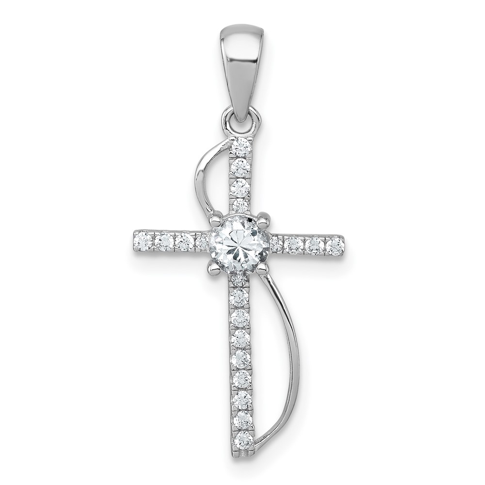 Sterling Silver Rhodium-plated Polished Fancy CZ Latin Cross Pendant