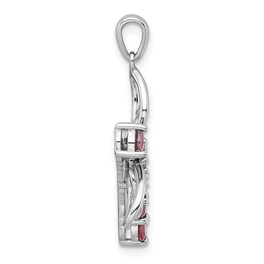 Sterling Silver Rhodium-plated Polished Garnet Dragonfly Pendant
