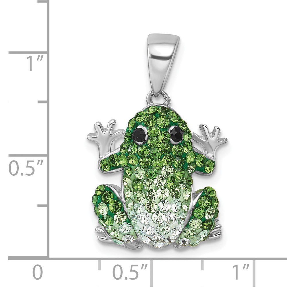 Sterling Silver Rhodium-plated Polished Green and White Crystal Frog Pendant