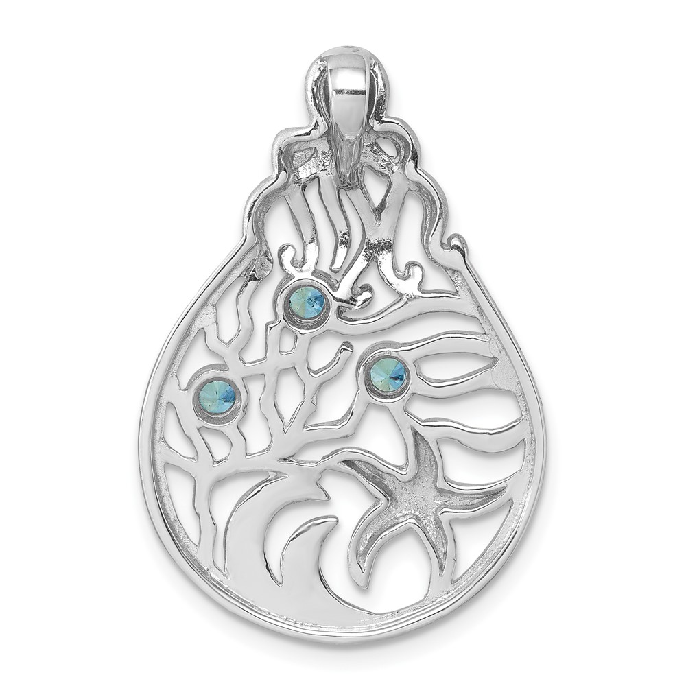 Sterling Silver Rhodium-plated Polished Octopus and Starfish Sea Life Scene Pendant