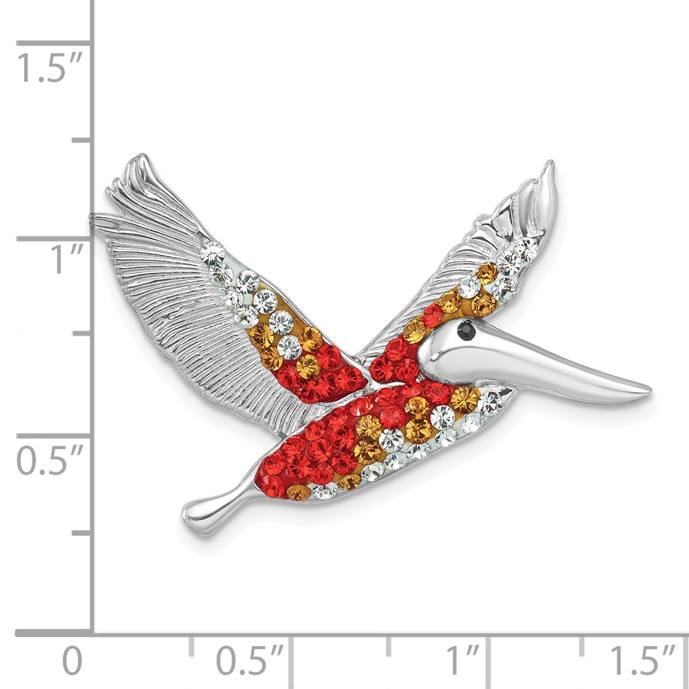 Sterling Silver Rhodium-plated Polished Orange Crystal Pelican Pendant