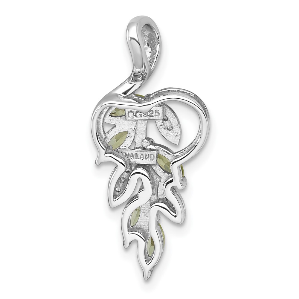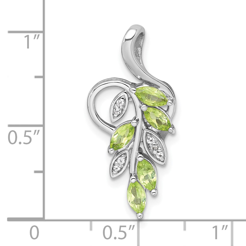 Sterling Silver Rhodium-plated Polished Peridot and White Topaz Leaves Chain Slide
