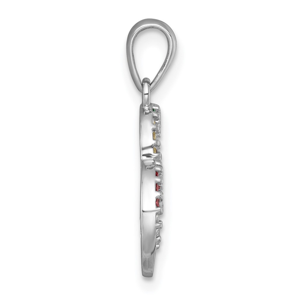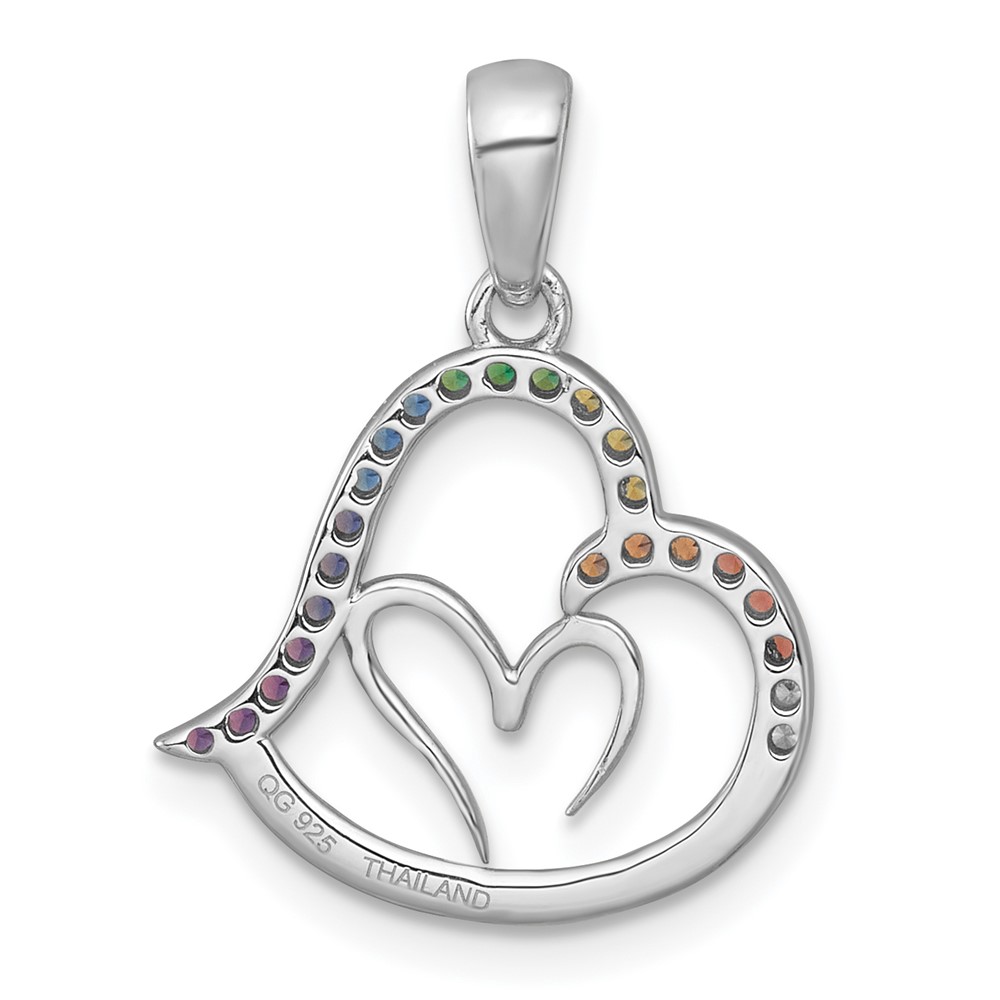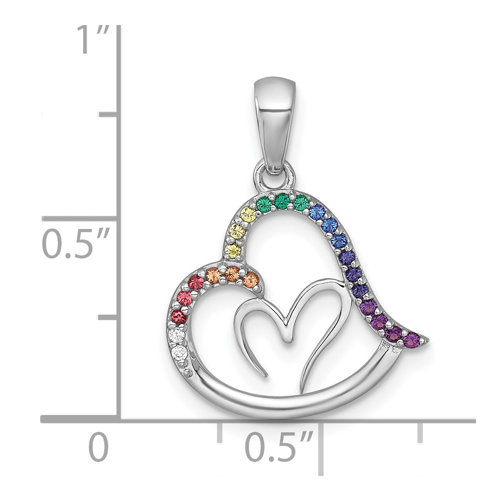 Sterling Silver Rhodium-plated Polished Rainbow Nano Crystals Double Heart Pendant