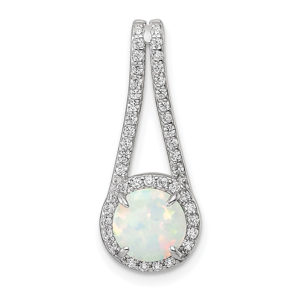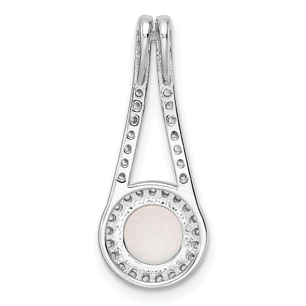 Sterling Silver Rhodium-plated Polished White Opal & CZ Halo Pendant
