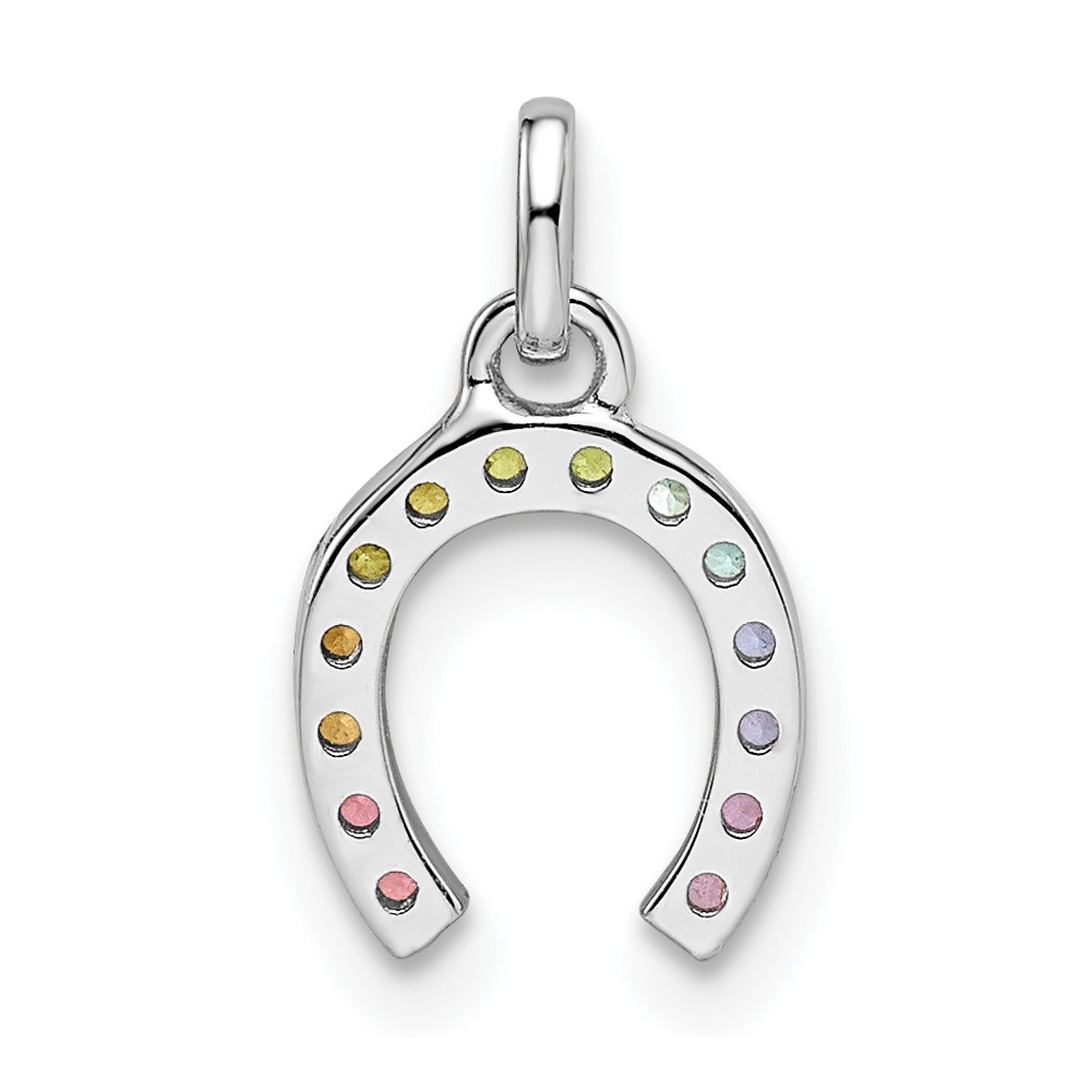 Sterling Silver Rhodium-plated Rainbow Nano Crystal Horseshoe Pendant