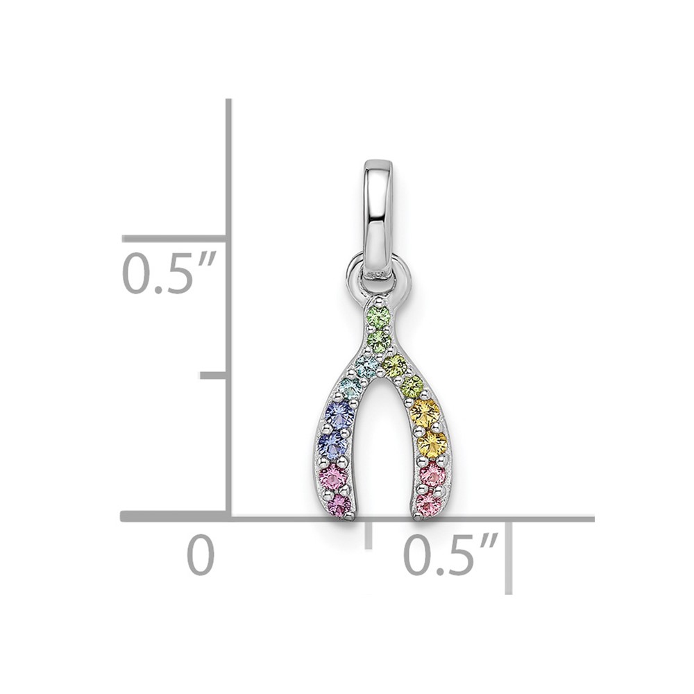 Sterling Silver Rhodium-plated Rainbow Nano Crystal Wishbone Pendant