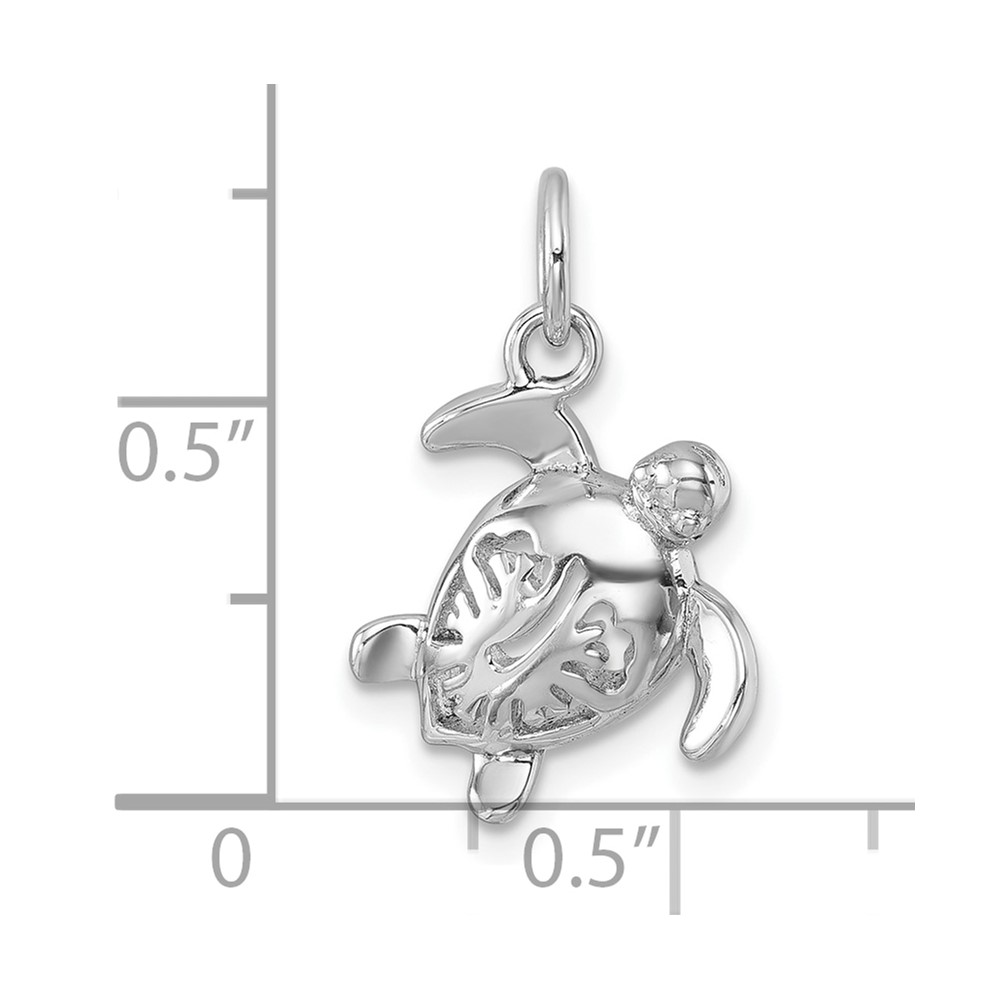 Sterling Silver Rhodium-Plated Tiny Turtle with Flower Back Pendant