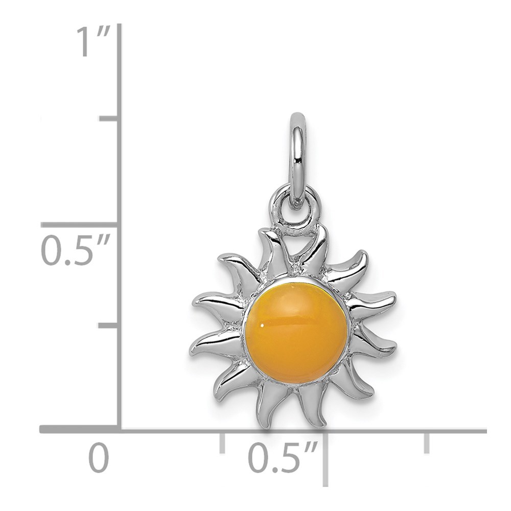 Sterling Silver Rhodium-plated Yellow Sun Charm