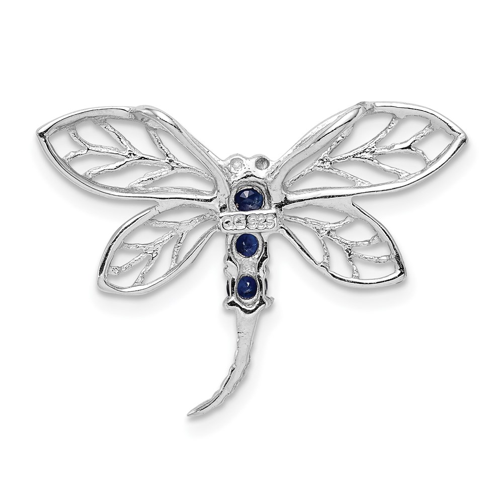 Sterling Silver Rhodium Sapphire Dragonfly Pendant