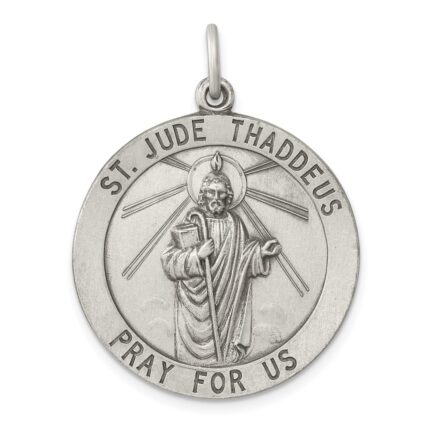 Sterling Silver Satin Antiqued Spanish St. Jude Thaddeus Medal Pendant
