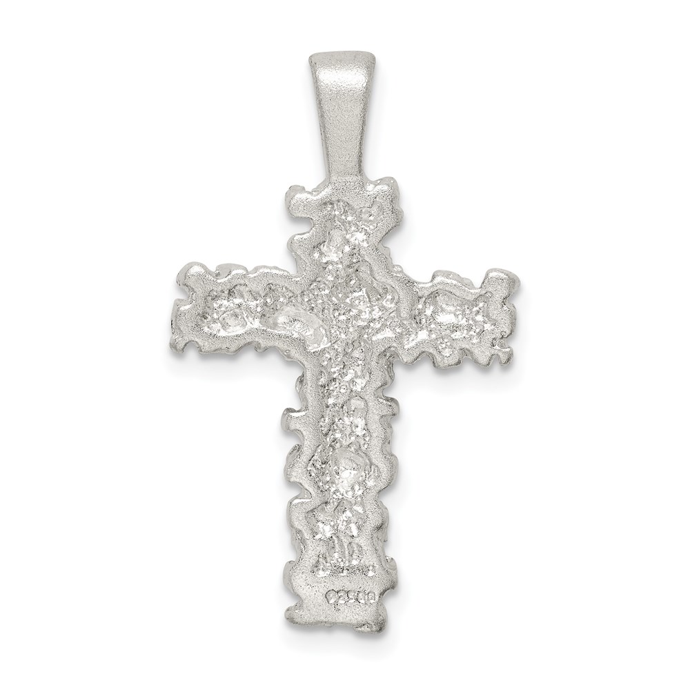 Sterling Silver Satin Finish Diamond-cut Cross Pendant