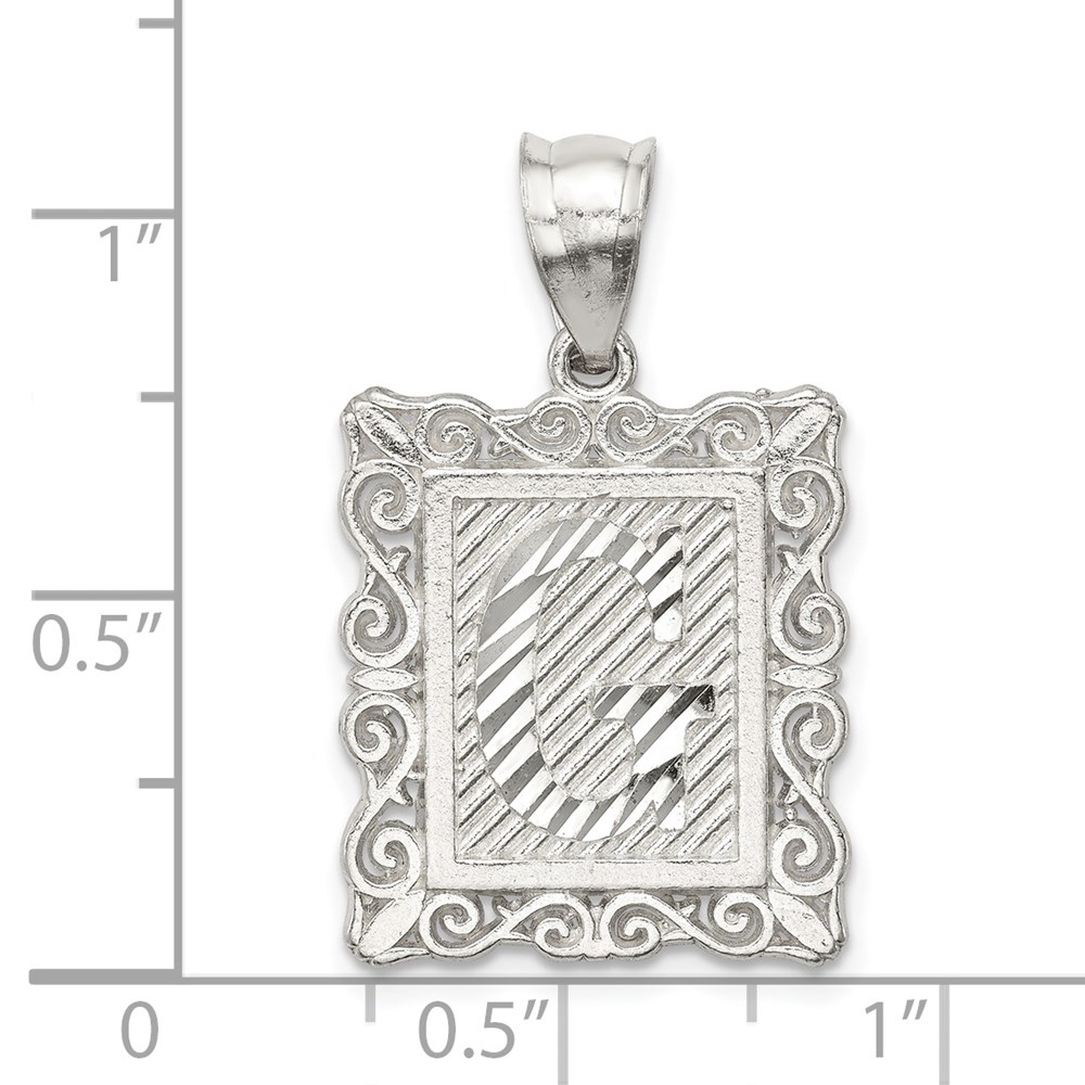Sterling Silver Square Diamond-cut Letter G Initial Pendant