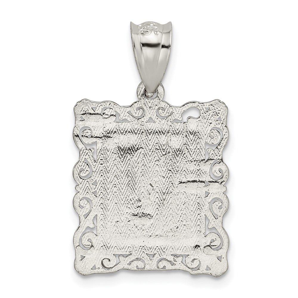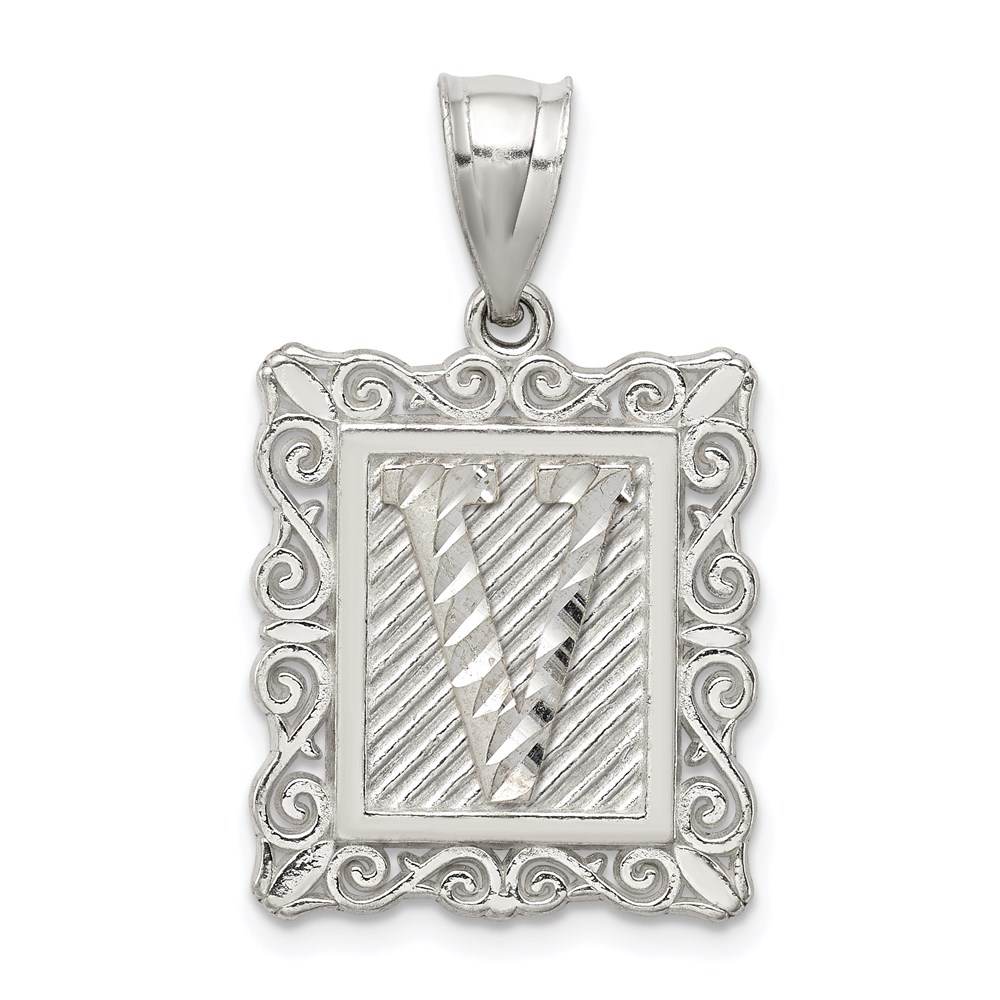 Sterling Silver Square Diamond-cut Letter V Initial Pendant