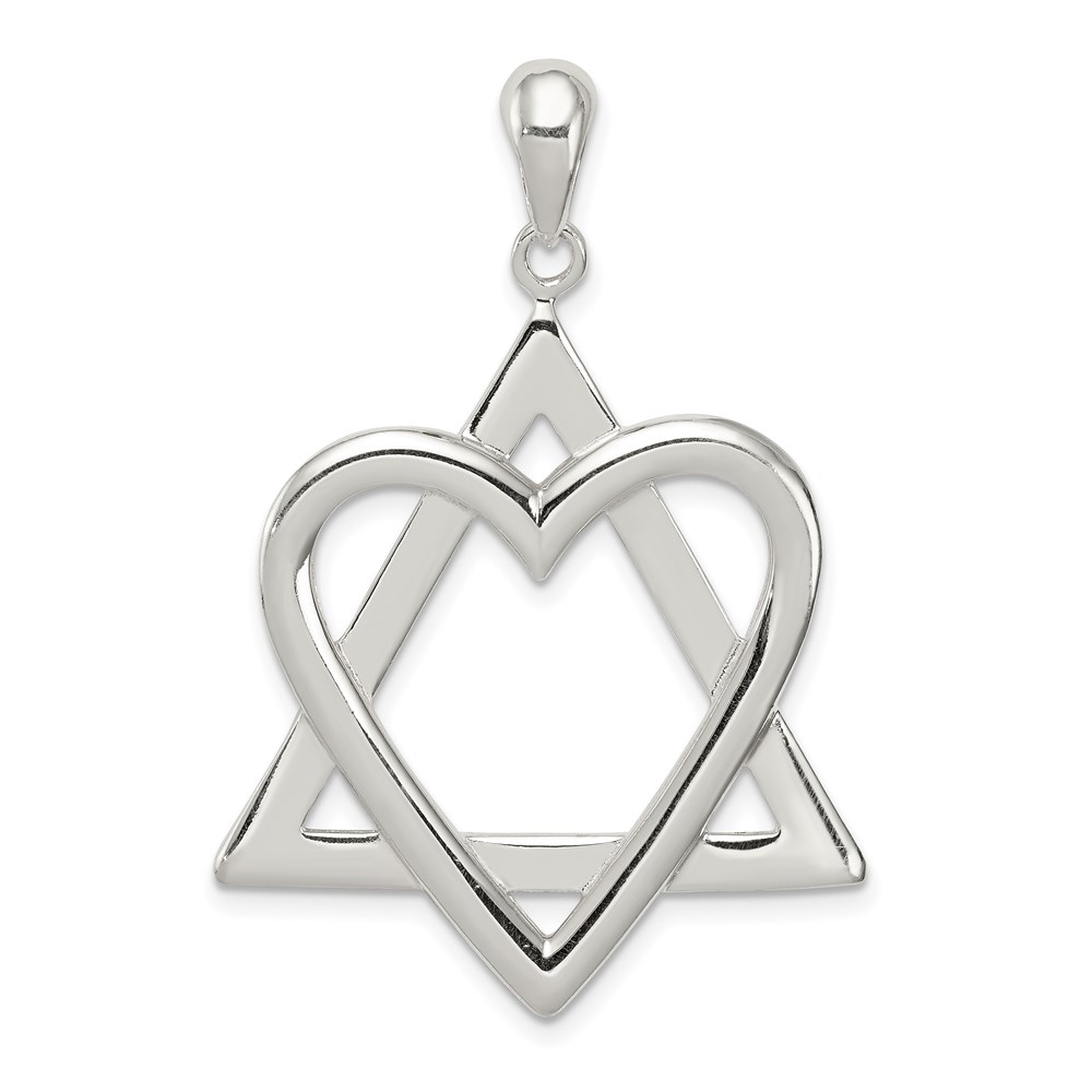 Sterling Silver Star of David Heart Pendant