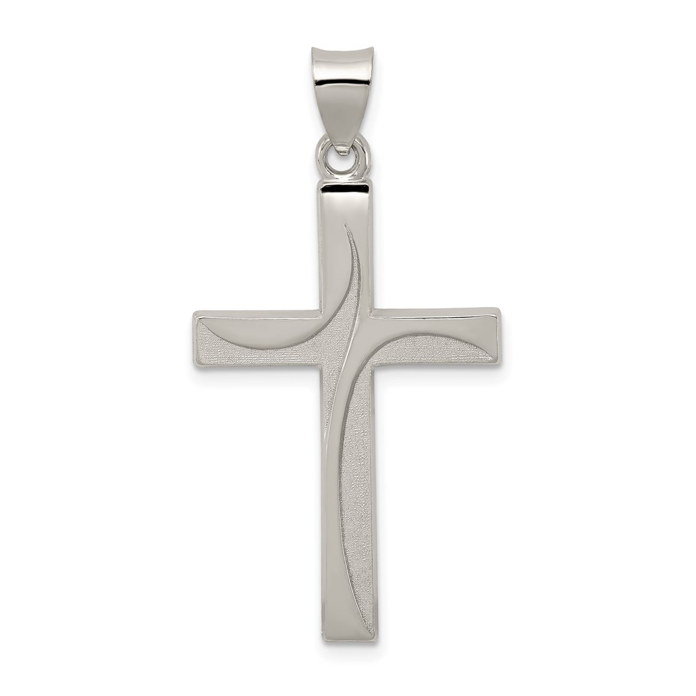 Sterling Silver Textured, Brushed and Polished Latin Cross Pendant