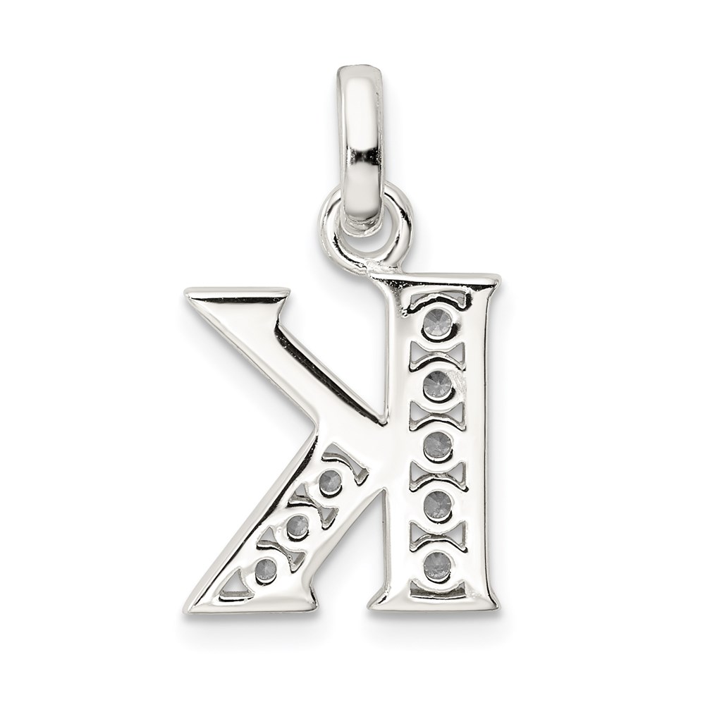 Sterling Silver White CZ Letter K Initial Pendant