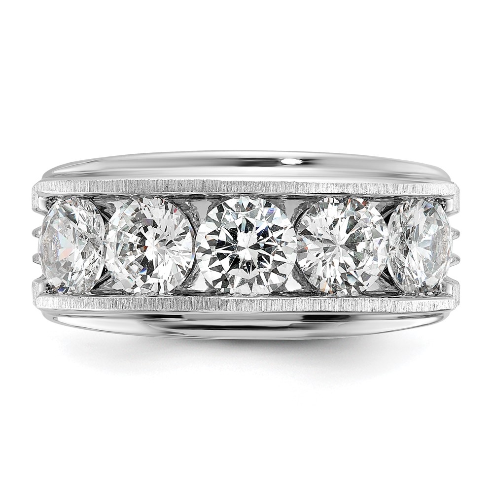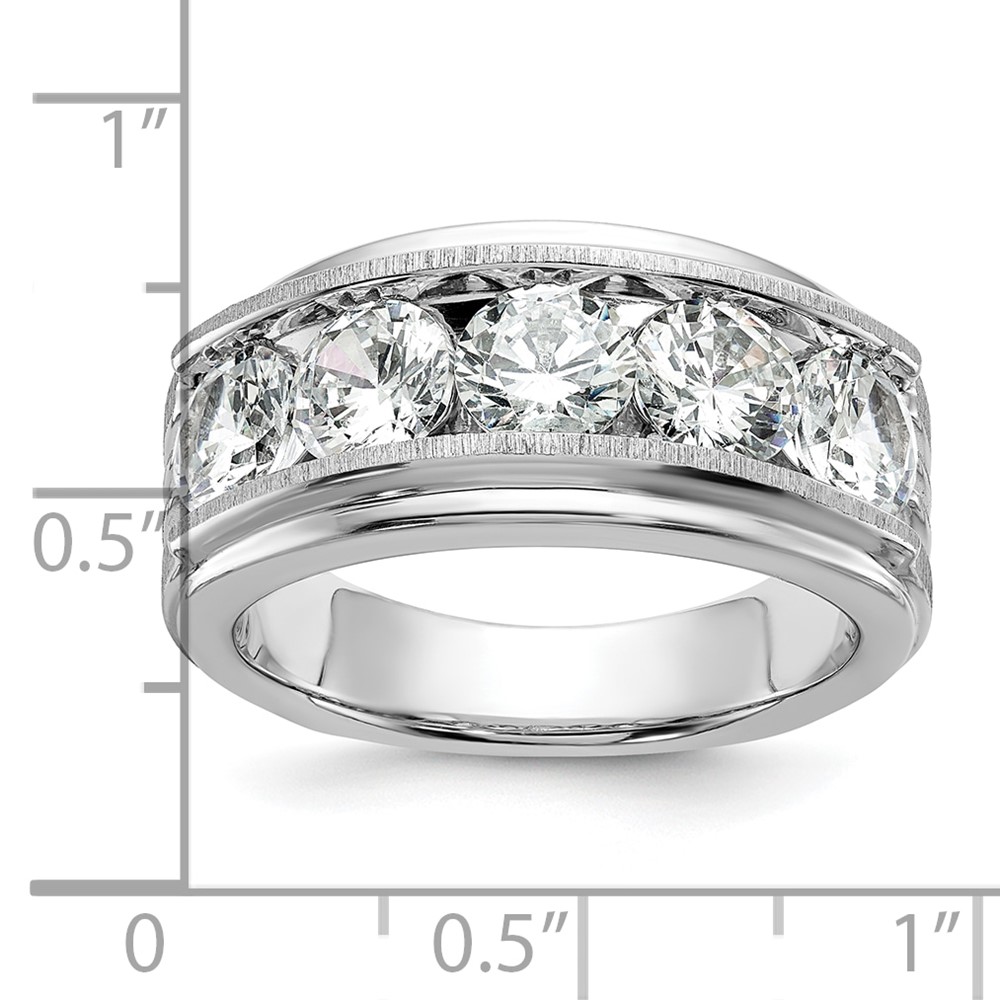 True Origin IBGoodman 14k White Gold 3 1/2 carat Lab Grown Diamond VS+ F+ Five Stone Complete Polished Brushed and Grooved Men’s Ring