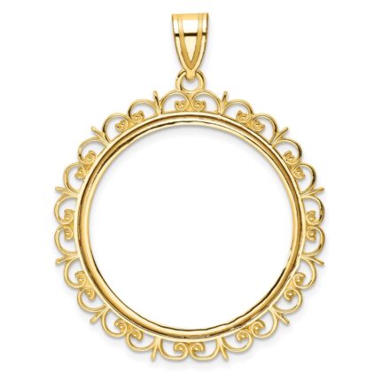 Wideband Distinguished Coin Jewelry 14k Polished Fancy 27.0mm Prong Coin Bezel Pendant