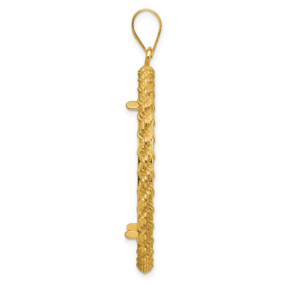 Wideband Distinguished Coin Jewelry 14k Polished and Diamond-cut with Casted Rope 32.7mm Prong Coin Bezel Pendant