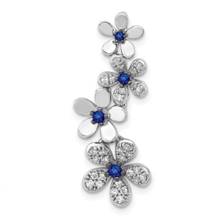 14k White Gold Diamond and .29 Sapphire Four Flowers Chain Slide