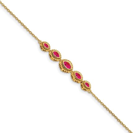 14k Complete 5-Stone Bezel-set Marquise Ruby and Chain 7 inch Bracelet