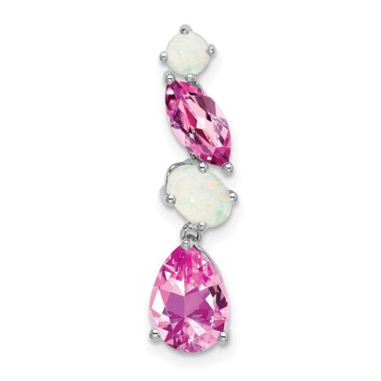 14k White Gold Lab Created Pink Sapphire and Lab Created Opal Chain Slide